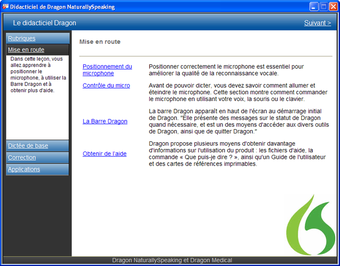 Un didacticiel très complet et en français permet également d'apprendre à bien placer le micro devant sa bouche, bien utiliser la barre Dragon, sauter des lignes, ou encore lancer des commandes sur Firefox et Internet Explorer.