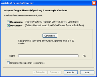 Dragon NaturallySpeaking ne relève d'aucun miracle. Comme de nombreux autres programmes de sa catégorie, seul un long entraînement et la lecture de plusieurs textes permettent d'obtenir de bons résultats. Dragon NaturallySpeaking est, de plus, toujours perfectible. Vous pouvez à votre guise approfondir l'entraînement pour plus de justesse dans la reconnaissance.