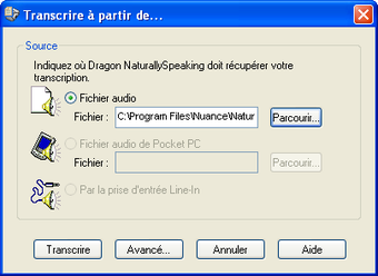 Dragon NaturallySpeaking permet aussi de retranscrire le texte depuis des fichiers audio. Le programme prend en charge les WAV, MP3, WMA et DSS. En revanche, pour récupérer les paroles d'une chanson, le résultat est laborieux.